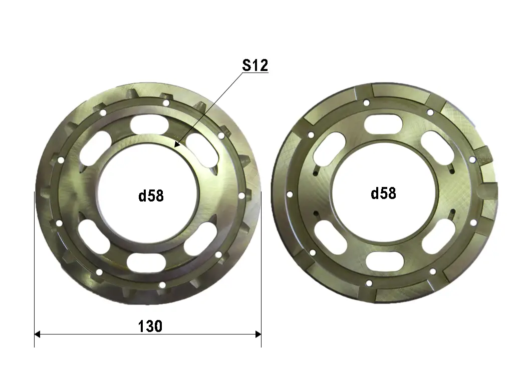 Диск из металла с центральным отверствием и каналами от поверхности контакта с блоком цилиндров до корпусных каналов нагнетания и всасывания рабочей жидкости .