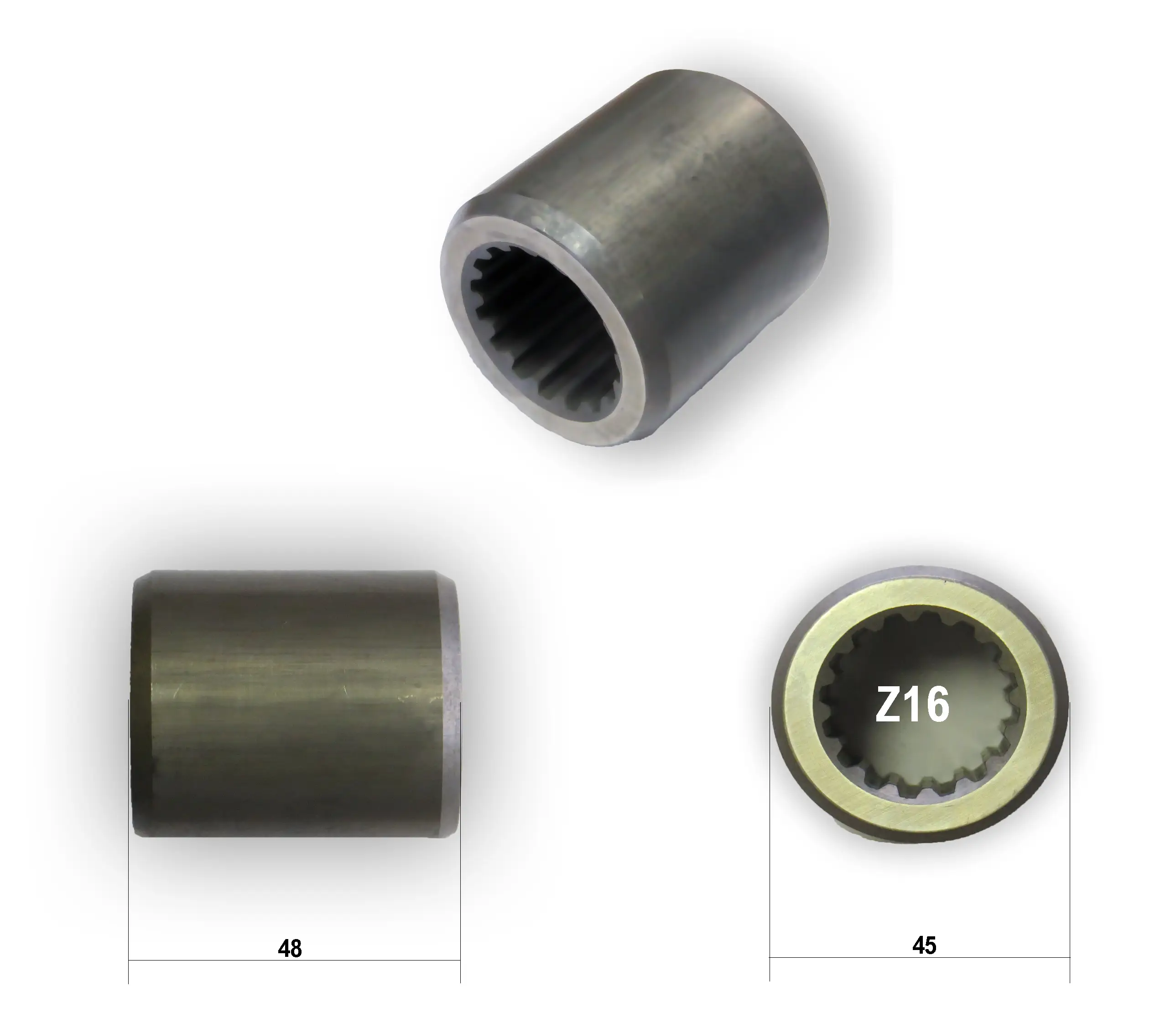 Стальной полый цилиндр с внутренними шлицами для сцепления валов с наружными шлицами.