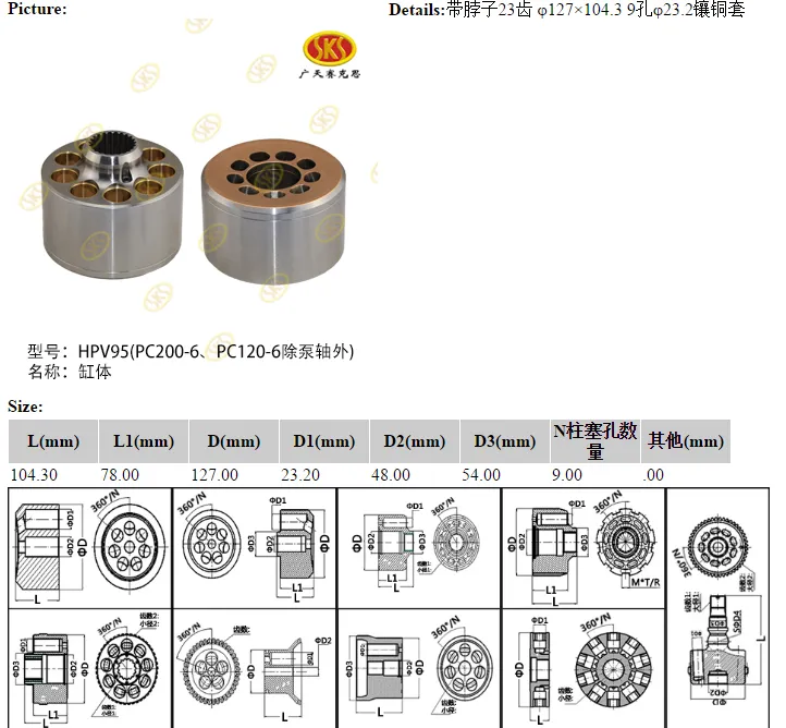 Komatsu Limited (Комацу) 708-2L-00461 MAIN PUMP HPV95+95 Блок цилиндров 127x104