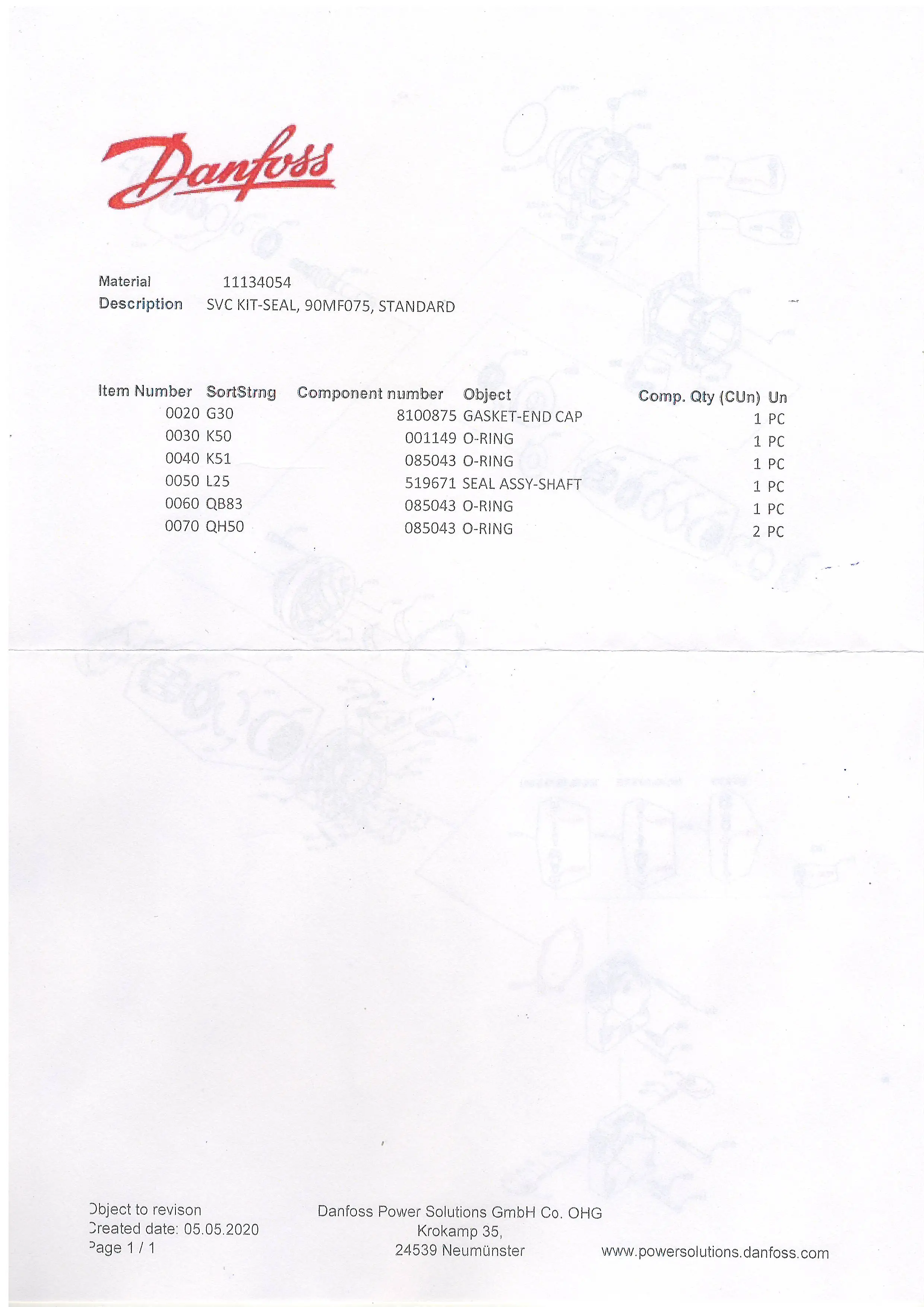 Sauer-Danfoss (Данфосс) 90M75 Комплект уплотнений с манжетой 38.1x57.15x9.5