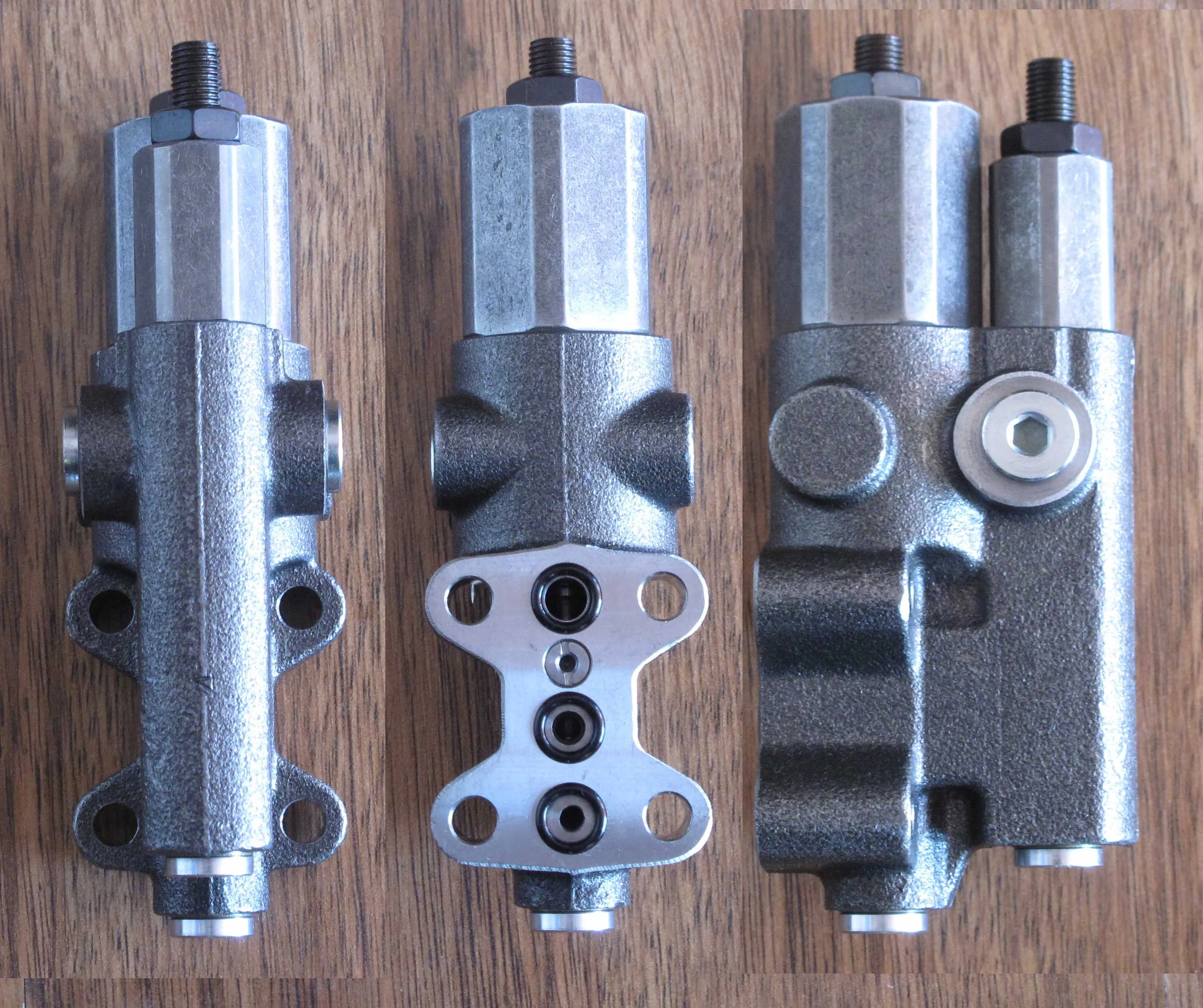 Корпус из стали, закреплённый на насосе, с втулками из стали переменного диаметра с отверстиями, направляющими управляющий поток рабочей жидкости в нужный канал при позиционировании золотника, связанного с наклоном качающего узла. Служит для сохранения потребляемой мощности привода путём изменения величины потока при переменной нагрузке.