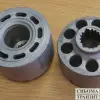 Диск из металла с центральным отверствием и каналами от поверхности контакта с блоком цилиндров до корпусных каналов нагнетания и всасывания рабочей жидкости .