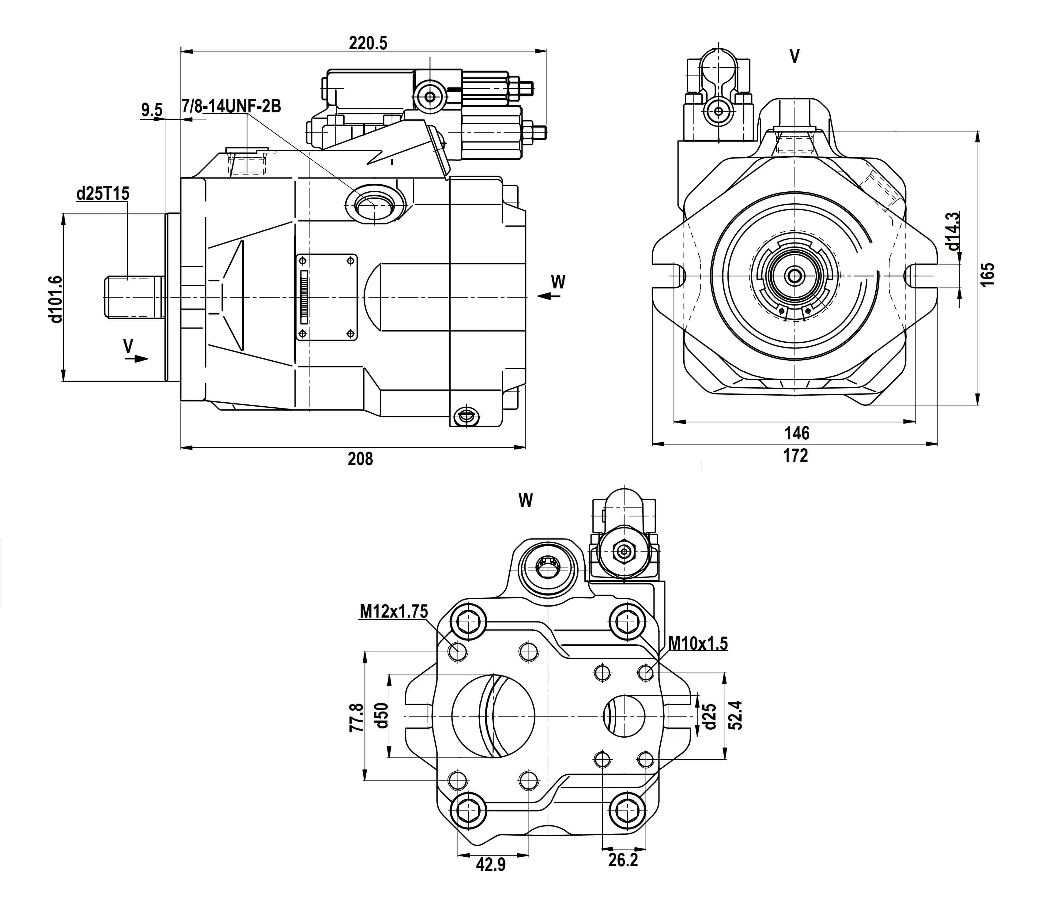 Vg=60ml/r DR=250bar FR=20bar N=2600rpm Усиленный вал "W"