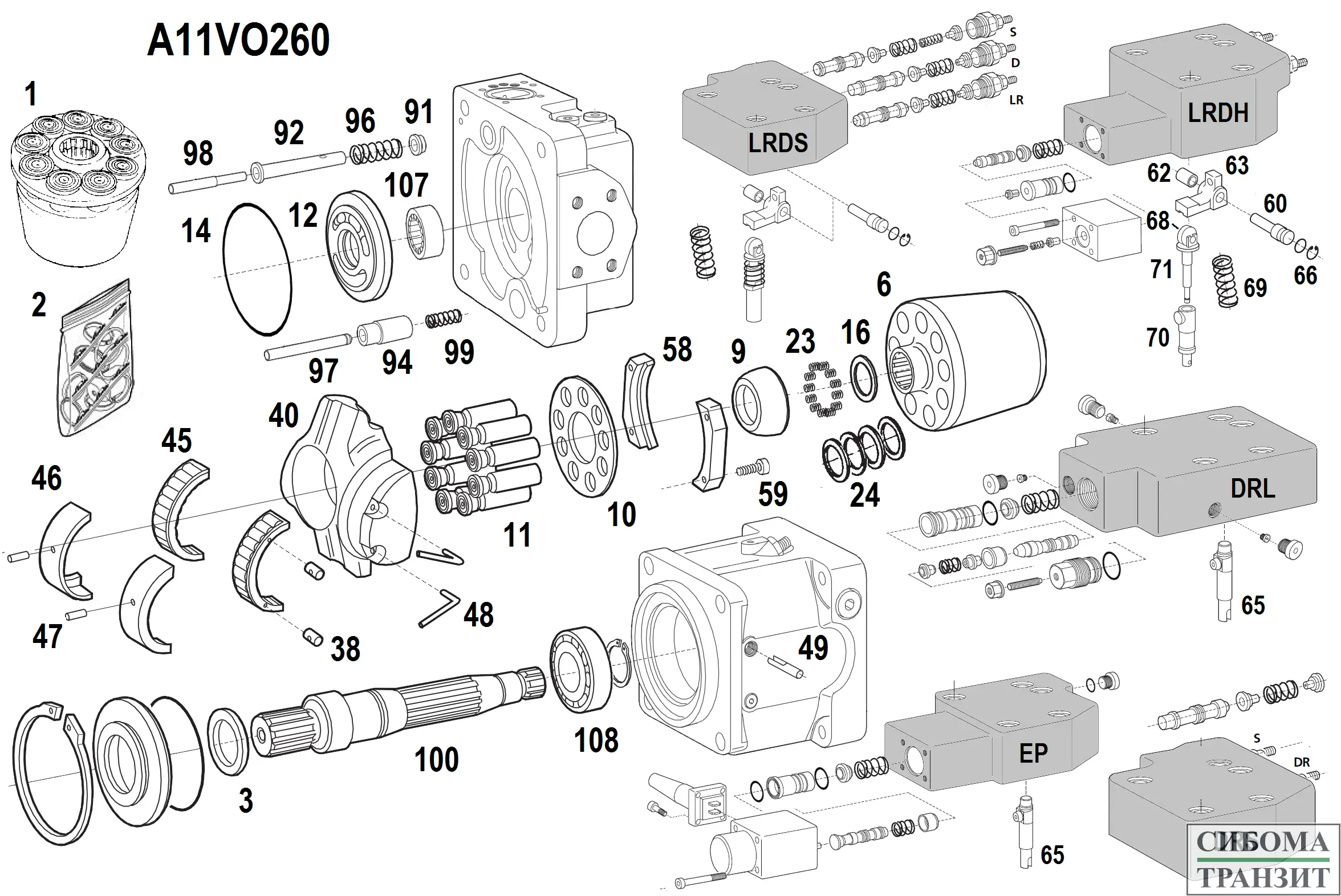 Корпус из стали, закреплённый на насосе, с втулками из стали переменного диаметра с отверстиями, направляющими управляющий поток рабочей жидкости в нужный канал при позиционировании золотника, связанного с наклоном качающего узла. Служит для сохранения потребляемой мощности привода путём изменения величины потока при переменной нагрузке.