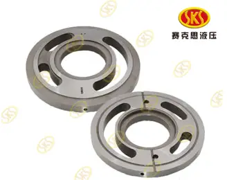 Диск из металла с центральным отверствием и каналами от поверхности контакта с блоком цилиндров до корпусных каналов нагнетания и всасывания рабочей жидкости .