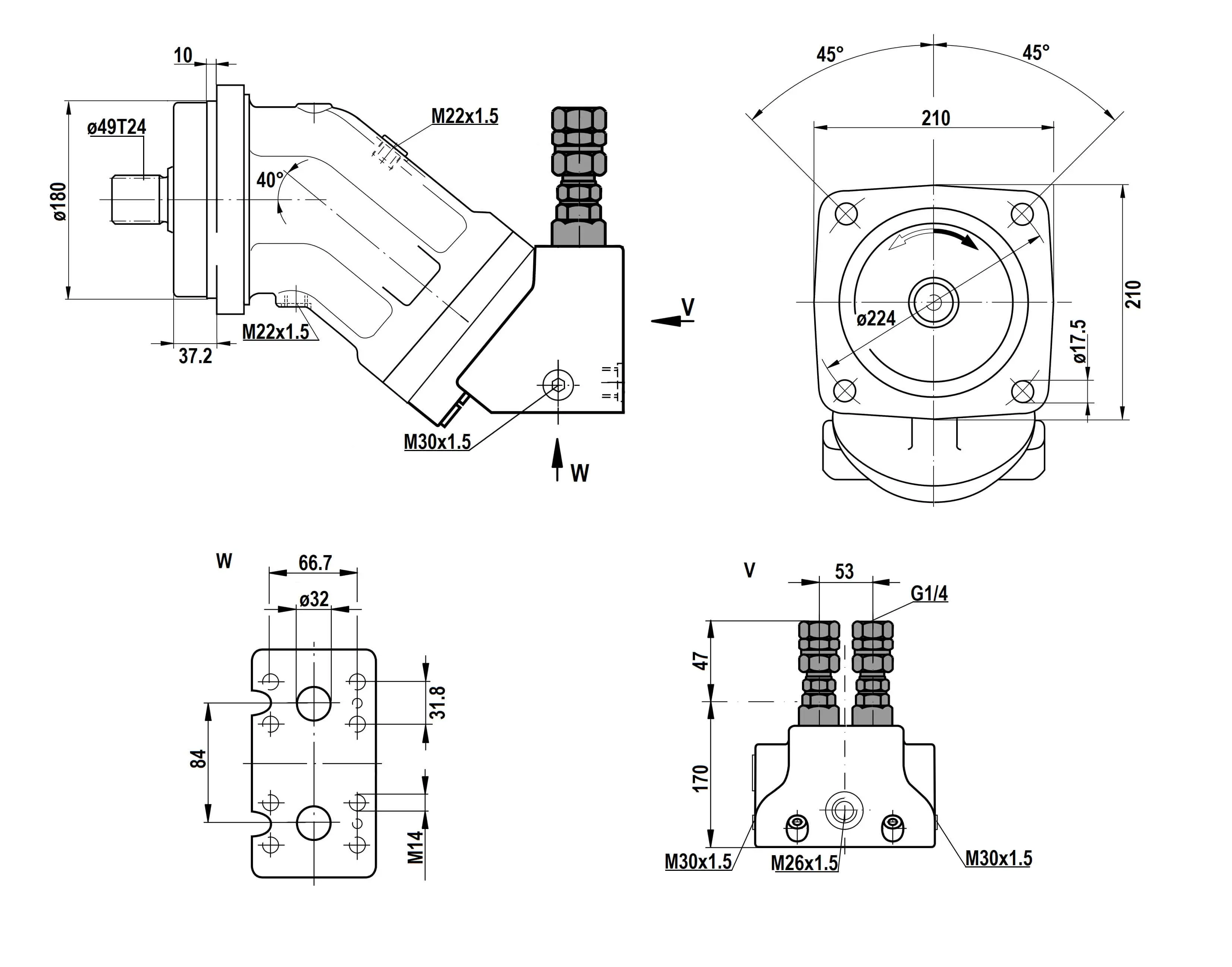 Bosch Rexroth (Рексрот) A2FO/FM10,12,16,23,28,32,45,56,63,80,90,107,125,160,180,200,250,355,500,755,1000