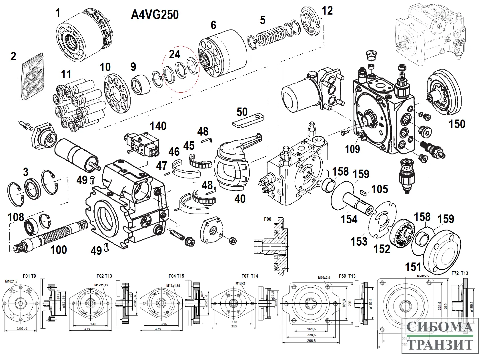 Ремкомплект вспомогательного насоса. Предназначен для создания потока рабочей жидкости для управления, подпитки и охлаждения основного насоса. Устанавливается на его корпусе и связан шлицами с его приводным валом. Состоит корпуса, удерживащего валы шестеренной пары и пластины скольжения торцев шестерён.