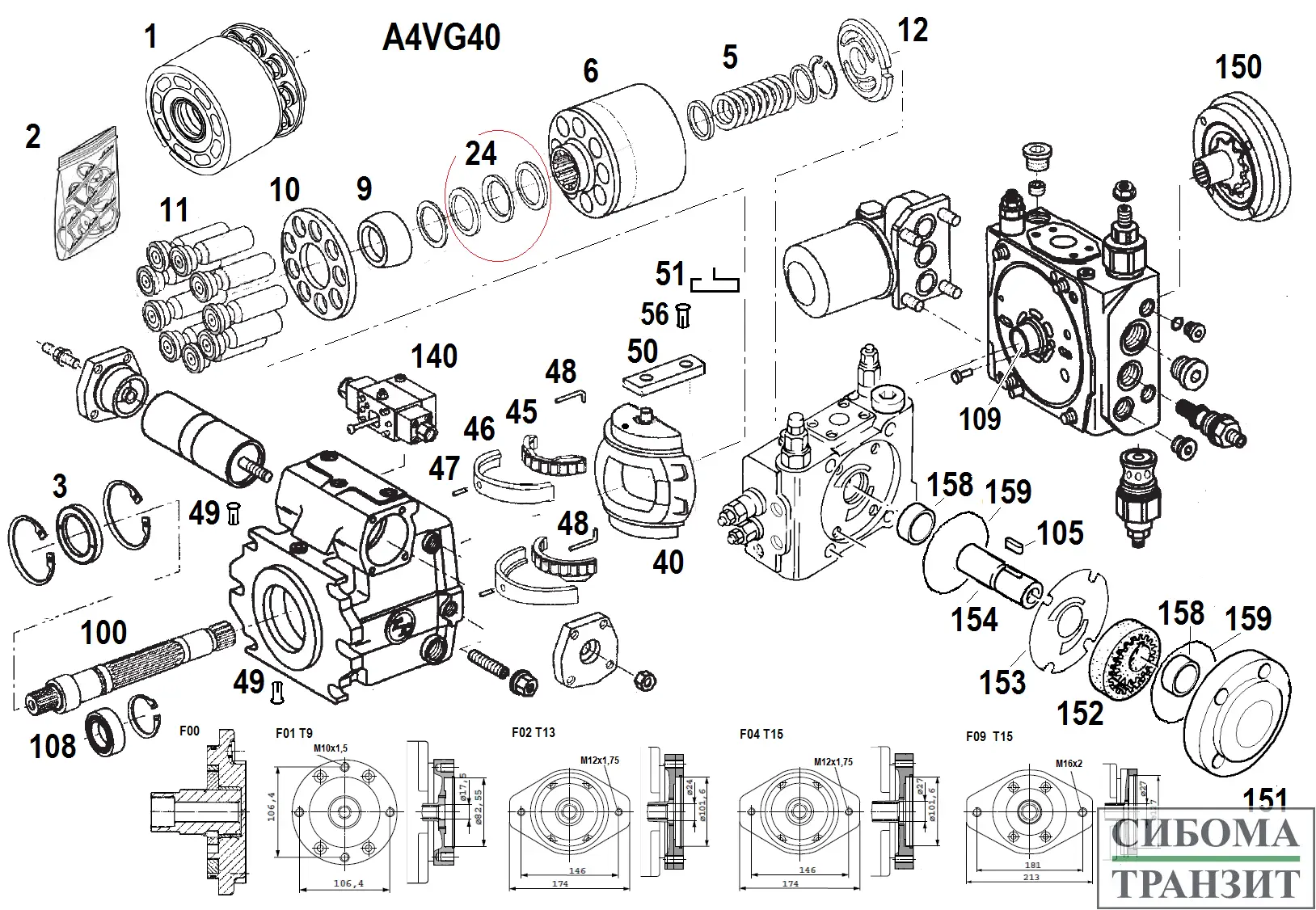 Ремкомплект вспомогательного насоса. Предназначен для создания потока рабочей жидкости для управления, подпитки и охлаждения основного насоса. Устанавливается на его корпусе и связан шлицами с его приводным валом. Состоит корпуса, удерживащего валы шестеренной пары и пластины скольжения торцев шестерён.
