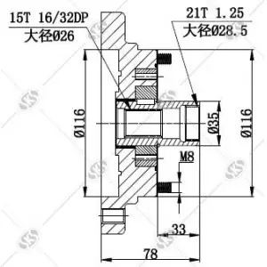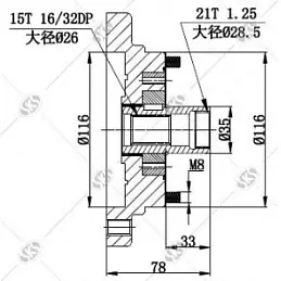 21T string 15T Flange diameter 116