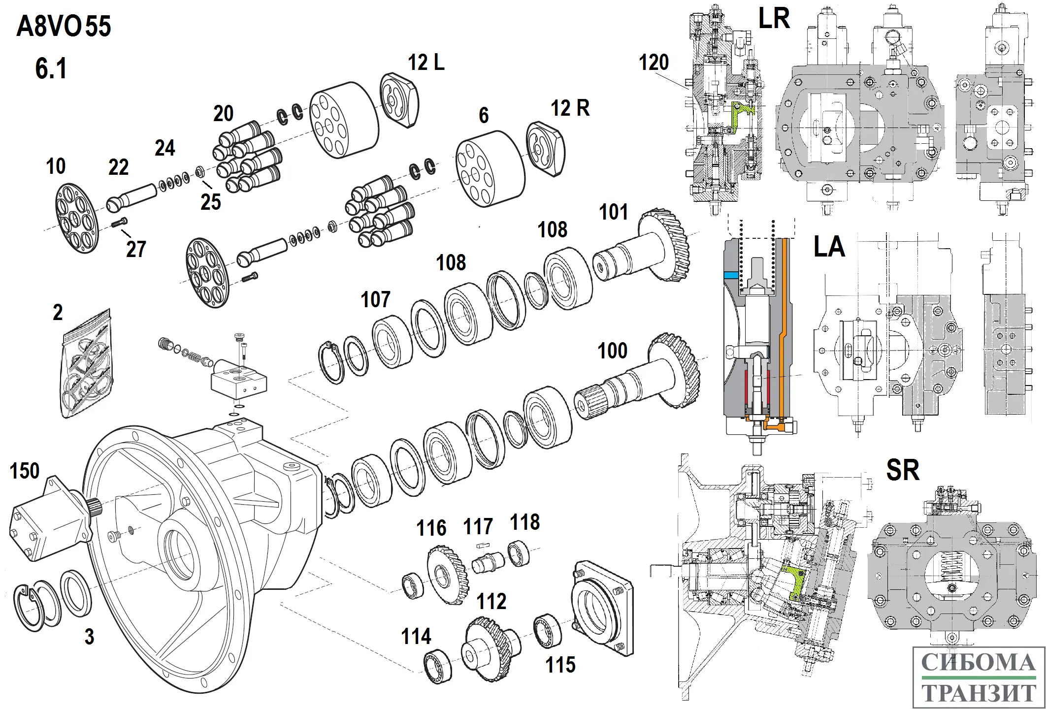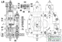 Ремкомплект вспомогательного насоса. Предназначен для создания потока рабочей жидкости для управления, подпитки и охлаждения основного насоса. Устанавливается на его корпусе и связан шлицами с его приводным валом. Состоит корпуса, удерживащего валы шестеренной пары и пластины скольжения торцев шестерён.