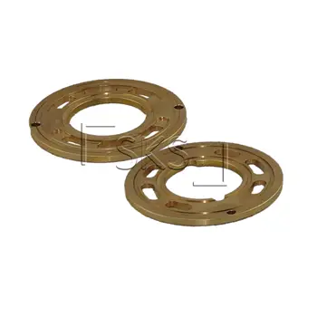 Диск из металла с центральным отверствием и каналами от поверхности контакта с блоком цилиндров до корпусных каналов нагнетания и всасывания рабочей жидкости .