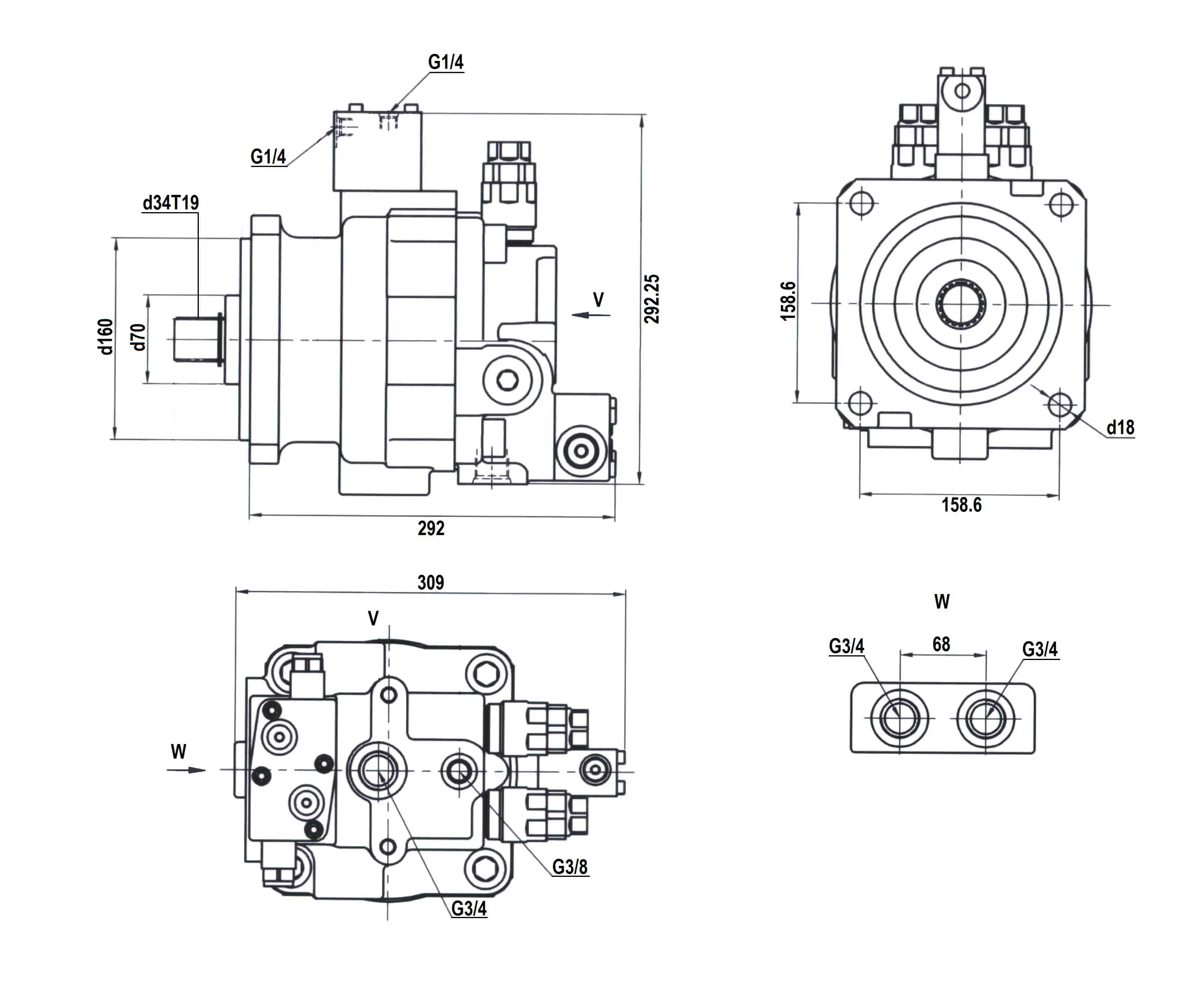 Vg=129ml/r Pmax=35MP T=18Nxm/MPa n=1850rpm