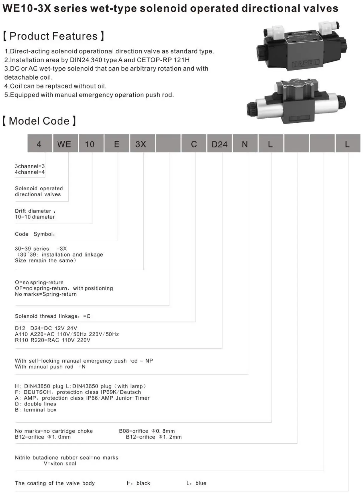 Гидрораспределители 4WE10E-D24LL электромагнитный клапан