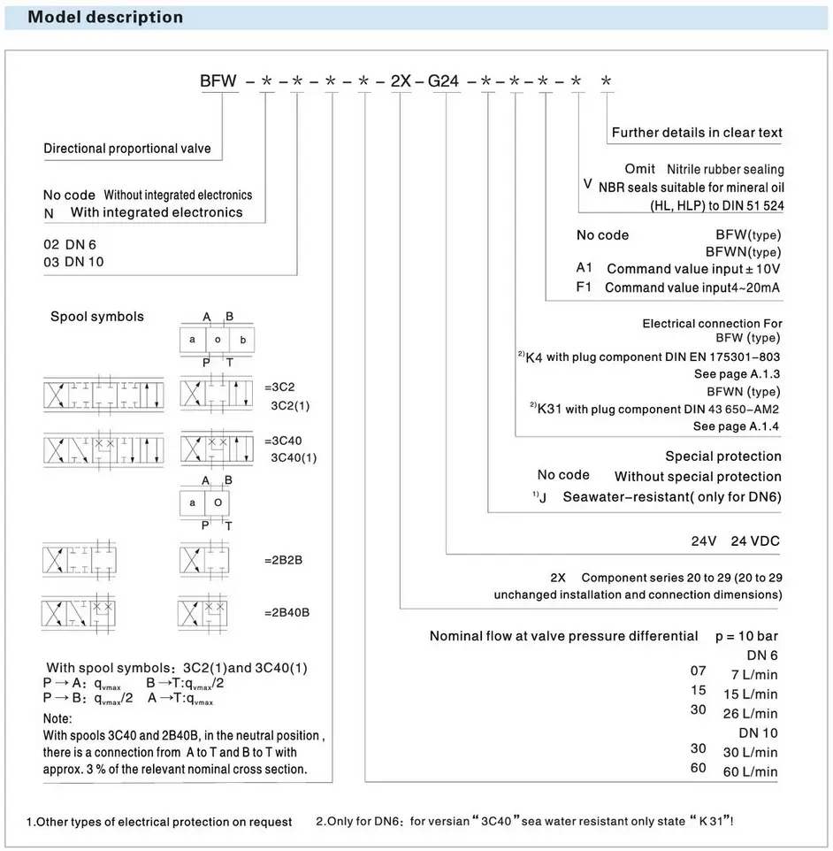 Гидрораспределители BFWN-02-3C40-30-20-G24K31A1 электромагнитный клапан