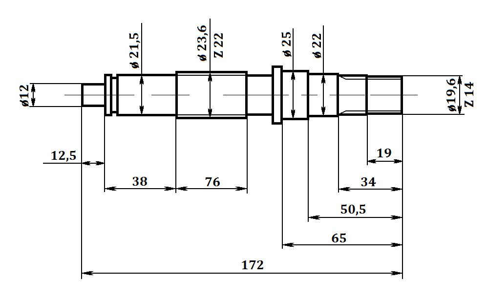 Стальной вал с шлицами для передачи крутящего момента деталям качающего узла.