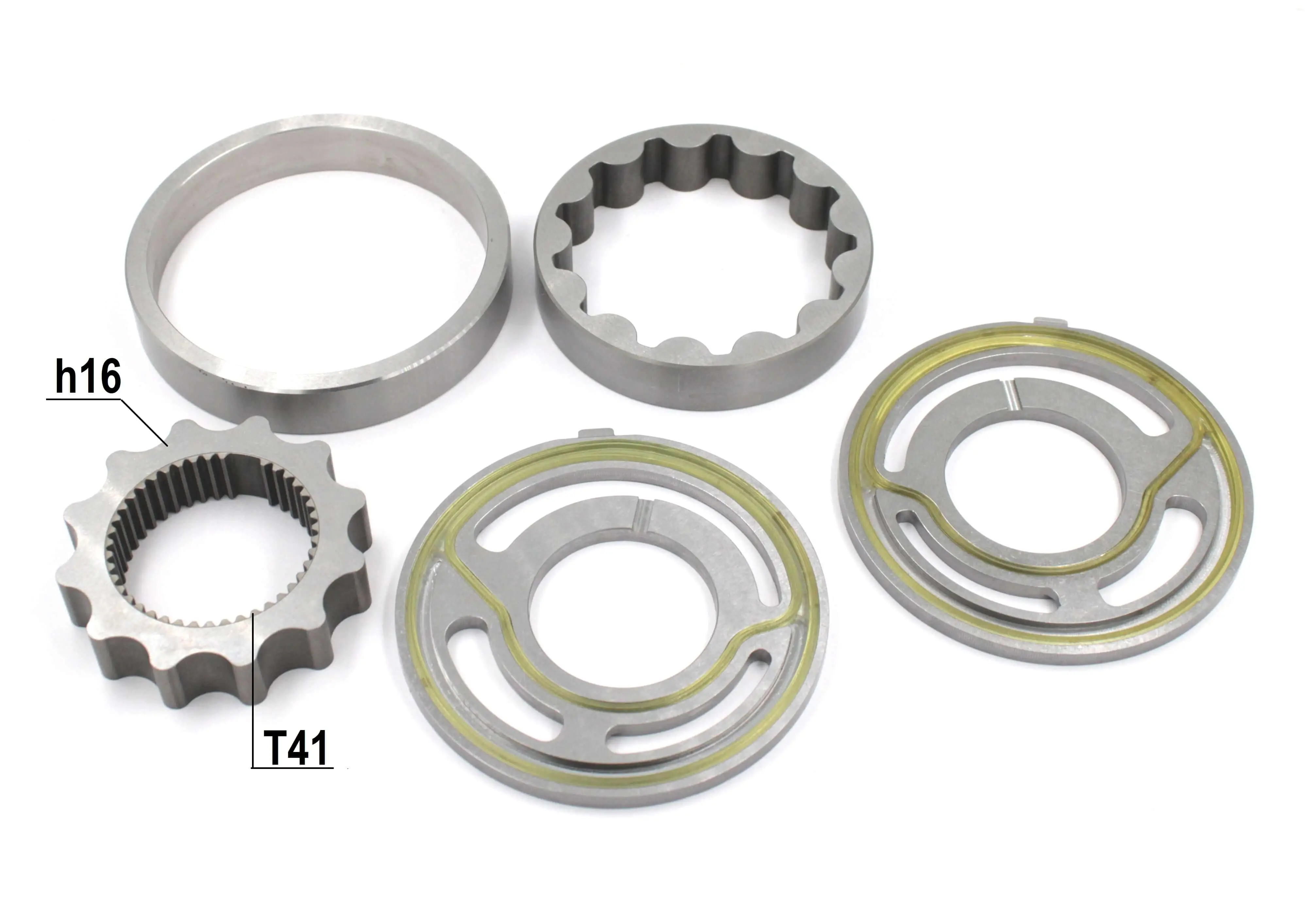 Ремкомплект вспомогательного насоса. Предназначен для создания потока рабочей жидкости для управления, подпитки и охлаждения основного насоса. Устанавливается на его корпусе и связан шлицами с его приводным валом. Состоит корпуса, удерживащего валы шестеренной пары и пластины скольжения торцев шестерён.
