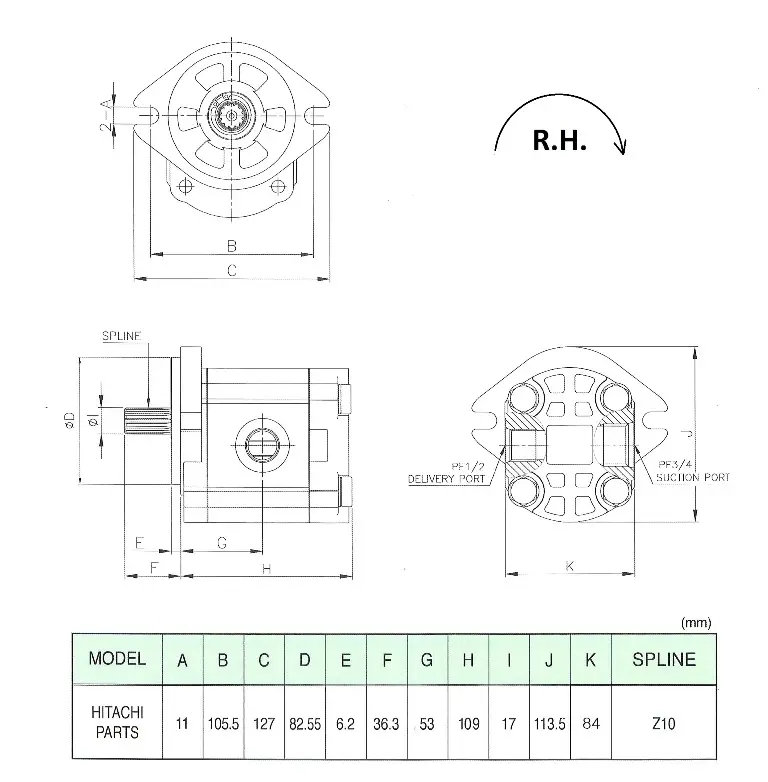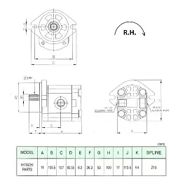 Hitachi (Хитачи) HPK055 HPK060 Шестерённый насос T10 (правый)