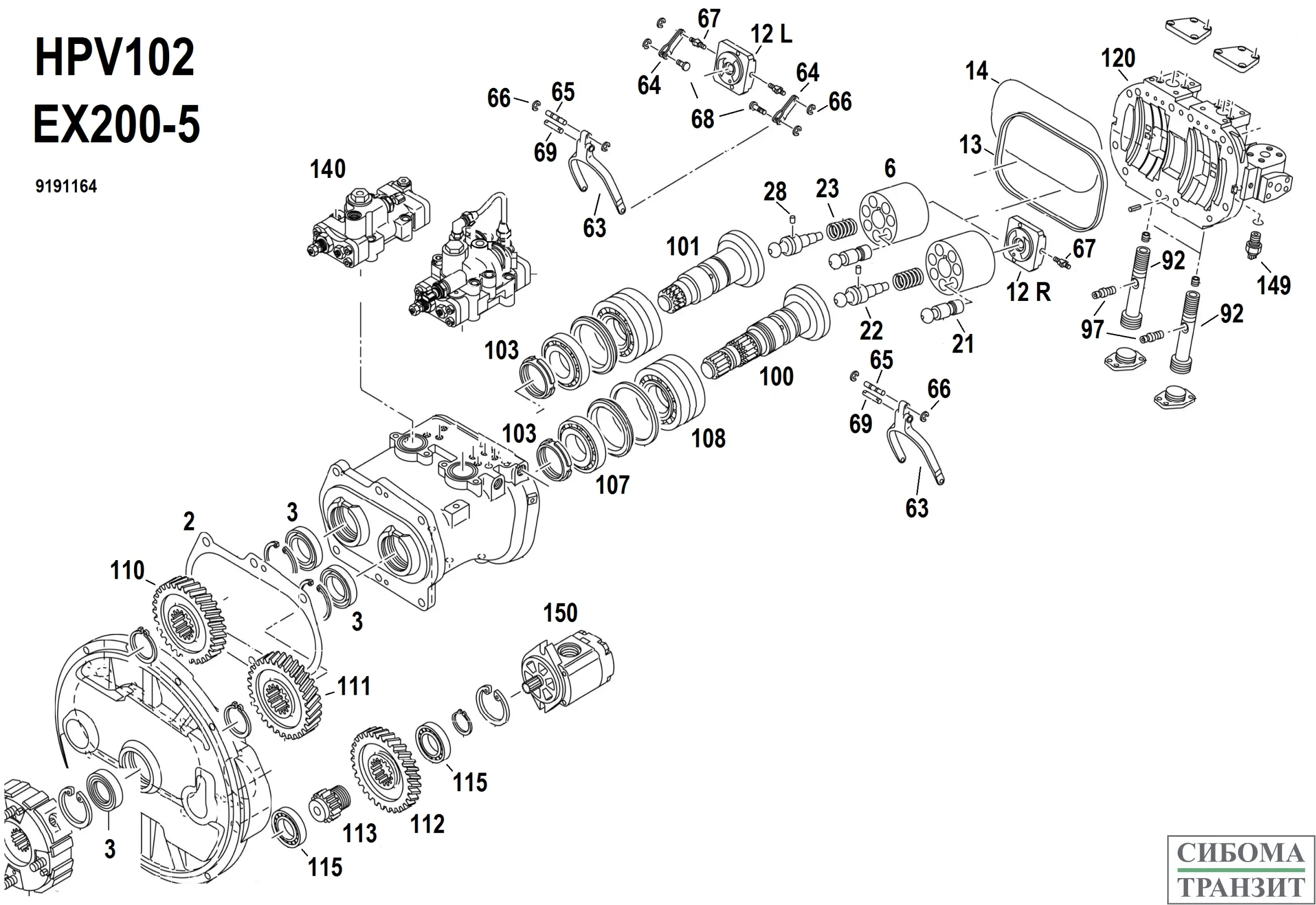 Набор на один качающий узел с манжетой AP3055F 55x78x12 HPV 102 (EX200-5/6)