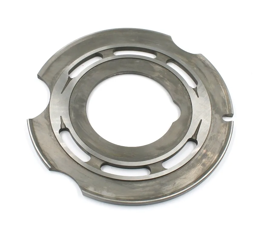 Диск из металла с центральным отверствием и каналами от поверхности контакта с блоком цилиндров до корпусных каналов нагнетания и всасывания рабочей жидкости .