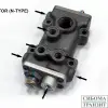 Корпус из стали, закреплённый на насосе, с втулками из стали переменного диаметра с отверстиями, направляющими управляющий поток рабочей жидкости в нужный канал при позиционировании золотника, связанного с наклоном качающего узла. Служит для сохранения потребляемой мощности привода путём изменения величины потока при переменной нагрузке.