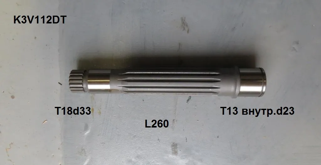 Kawasaki (Кавасаки) K3V112DT запчасти Ведомый вал T18d33 L260 внутр.T13d23