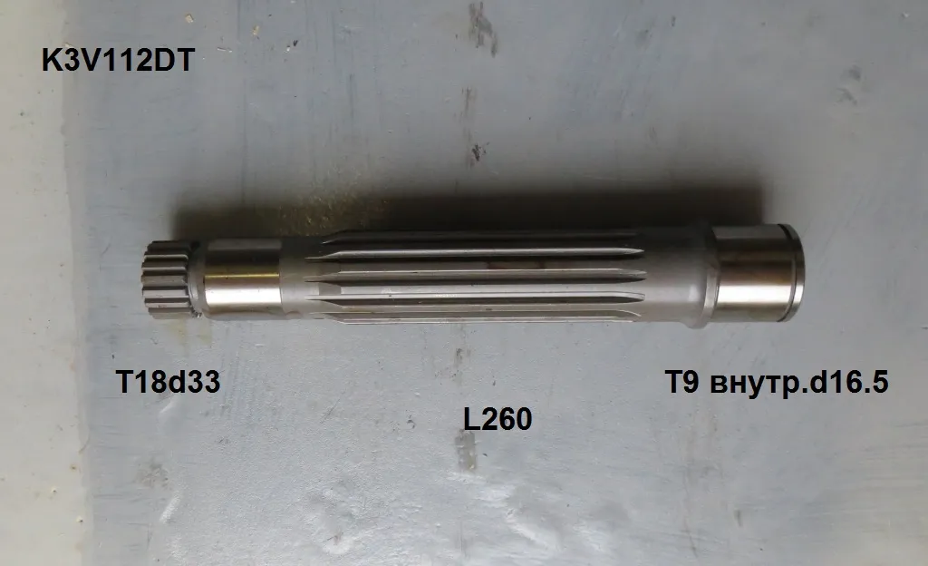 Kawasaki (Кавасаки) K3V112DT запчасти Ведомый вал T18d33 L260 внутр.T9d16.5