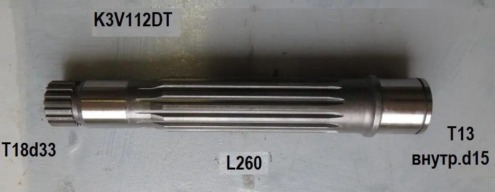 Kawasaki (Кавасаки) K3V112DT запчасти Ведомый вал T18d33 L260 внутр.T13d15