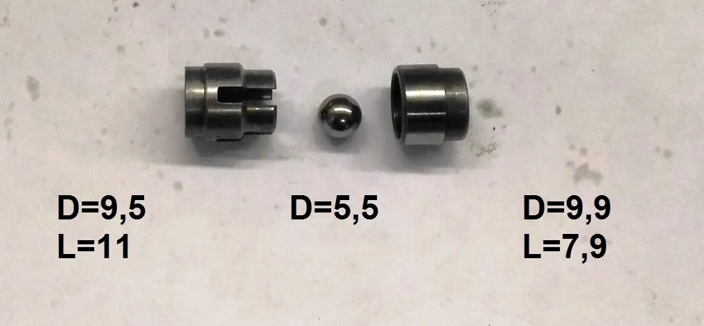 Полый стальной цилиндр с шариком внутри, который опирается на коническую поверхность меньшего диаметра чем шарик. При этом шарик закрывает движение потока жидкости в сторону конуса.