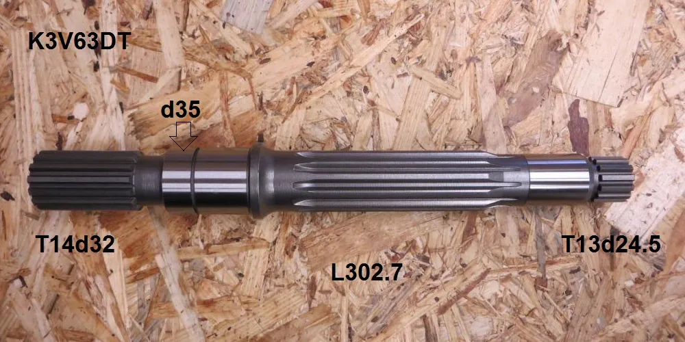 Kawasaki (Кавасаки) K3V63DT запчасти Ведущий вал T14d31.3 L302.7 T13d24.5 диаметр под мал подшипник 28 мм