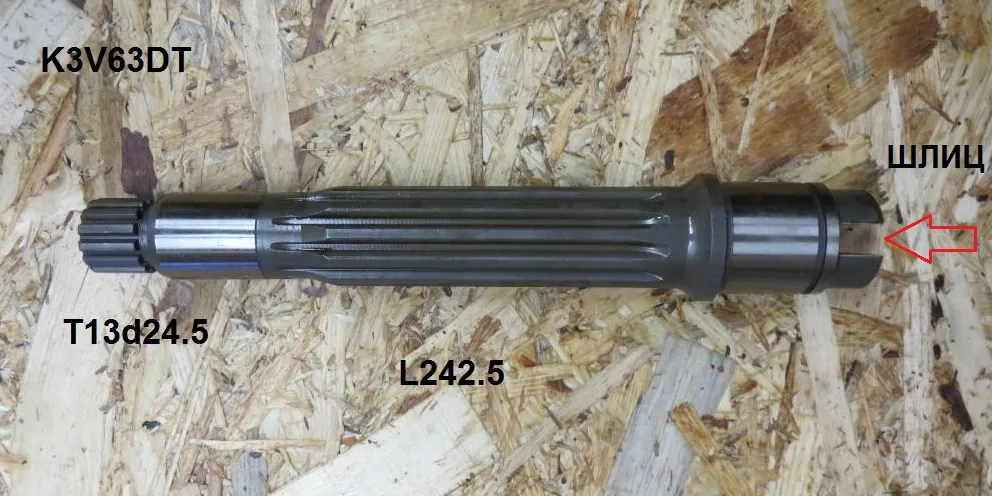 Kawasaki (Кавасаки) K3V63DT запчасти Ведомый вал T13d24.5 L242.5 диаметр под мал подшипник 28 мм