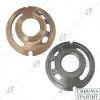 Диск из металла с центральным отверствием и каналами от поверхности контакта с блоком цилиндров до корпусных каналов нагнетания и всасывания рабочей жидкости .