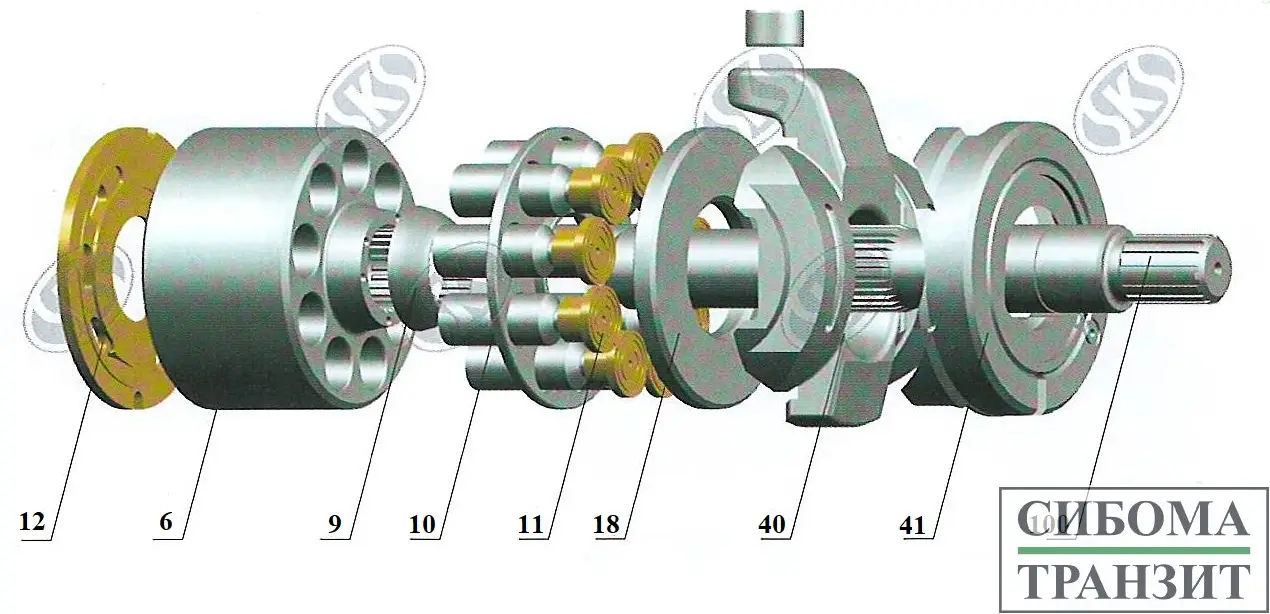 Стальной вал с шлицами для передачи крутящего момента деталям качающего узла.