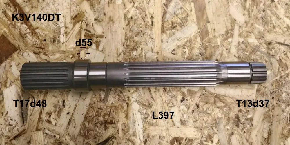Kawasaki (Кавасаки) K5V160DT запчасти Ведущий вал T17d48 L397 T13d37 Под подшипник 40мм