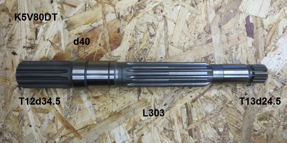 Kawasaki (Кавасаки) K5V80DT запчасти Ведущий вал T12d34.5 L303 T13d24.5 диаметр под мал подшипник 26 мм