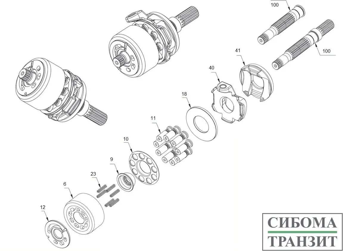 Стальной вал с шлицами для передачи крутящего момента деталям качающего узла.