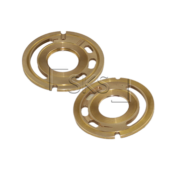 Диск из металла с центральным отверствием и каналами от поверхности контакта с блоком цилиндров до корпусных каналов нагнетания и всасывания рабочей жидкости .