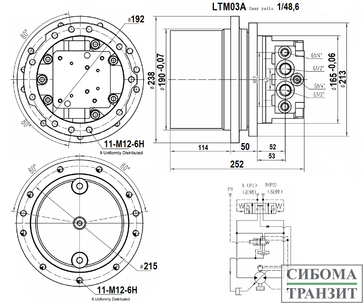 LTM03A редуктор хода миниэкскаватора (2.8-3.5T)