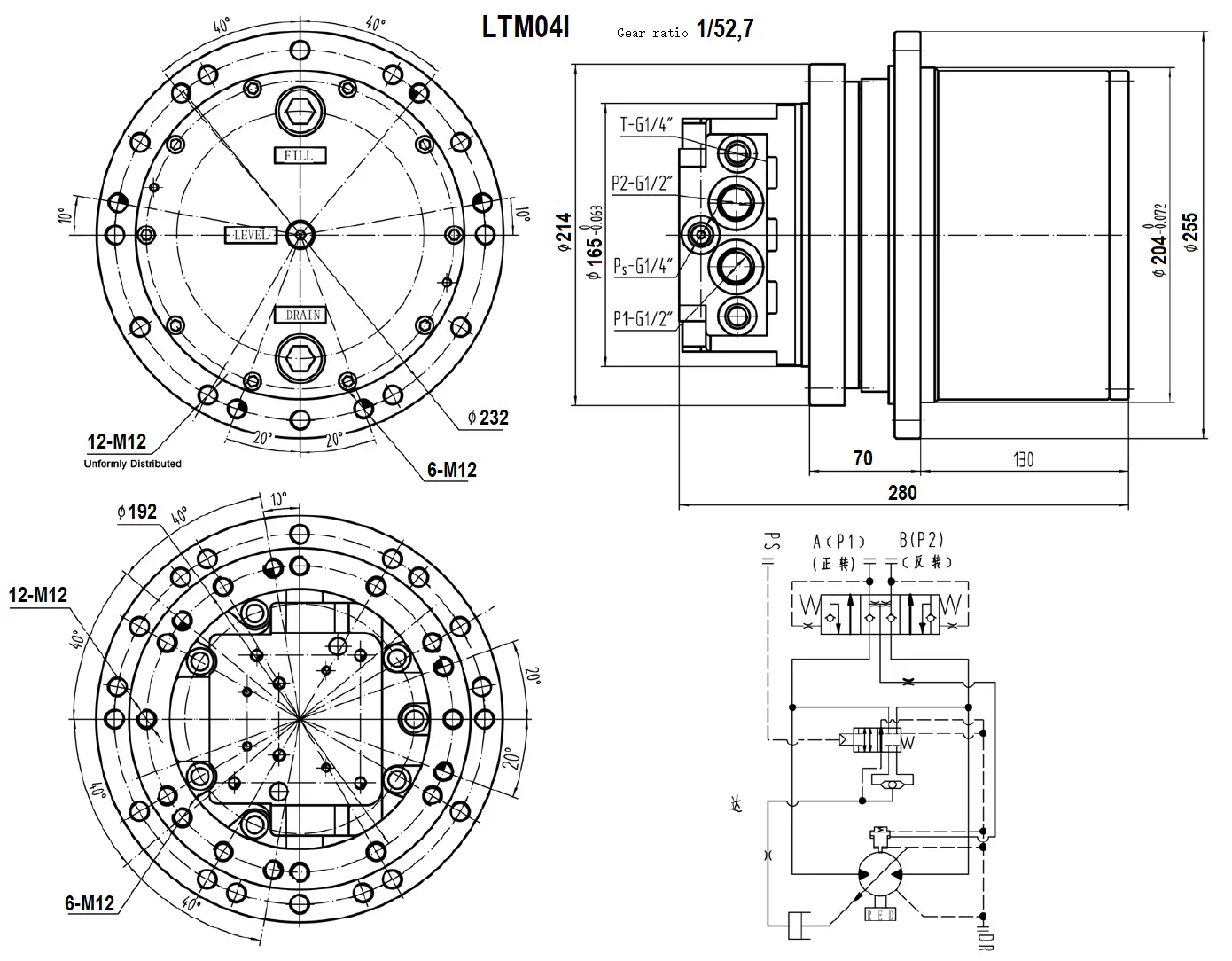 LTM04I редуктор хода миниэкскаватора (3-4T) Гидромотор хода LTM04I