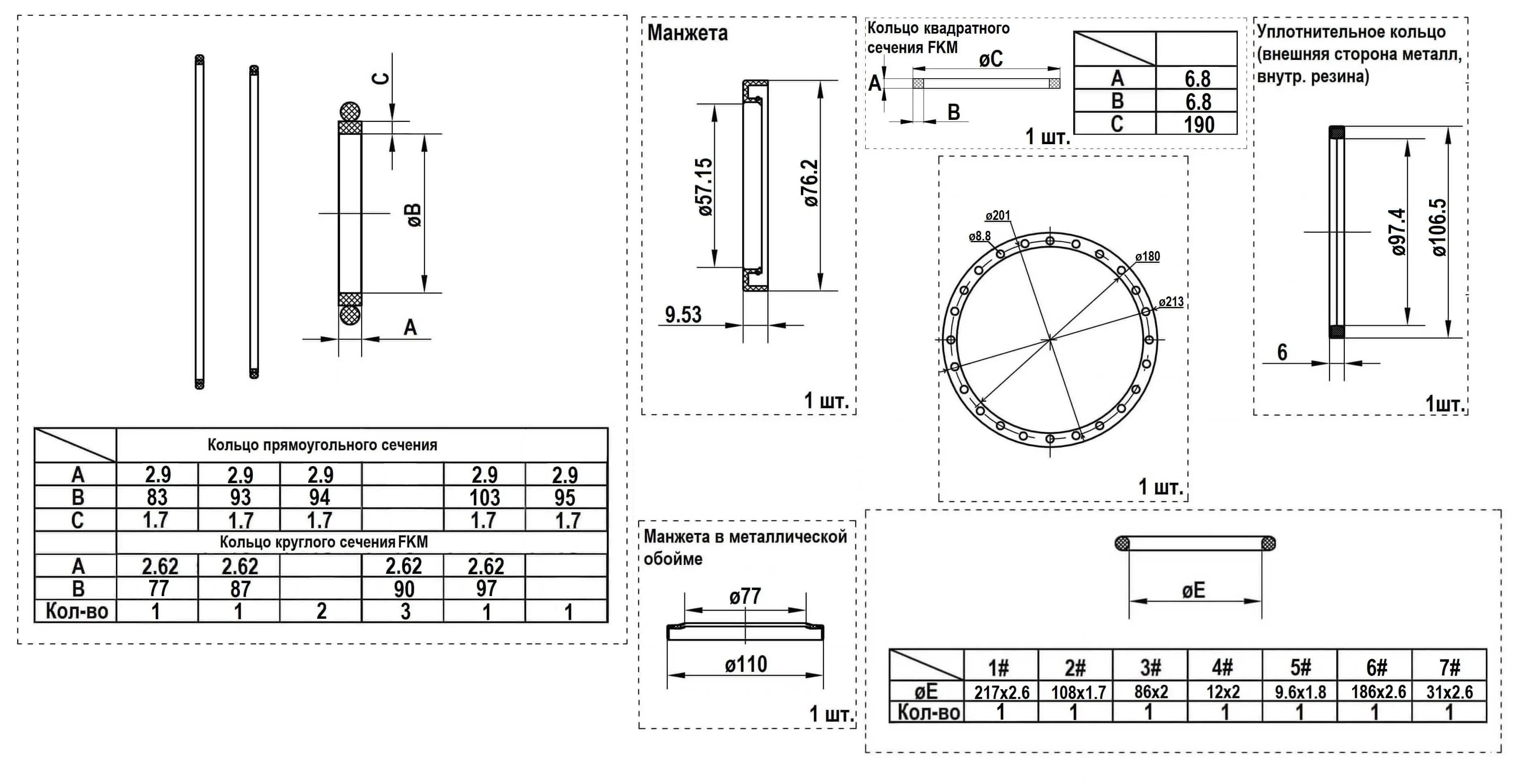 MCR05 запчасти Комплект уплотнений (two speed B4) Тип 1 с прокладкой