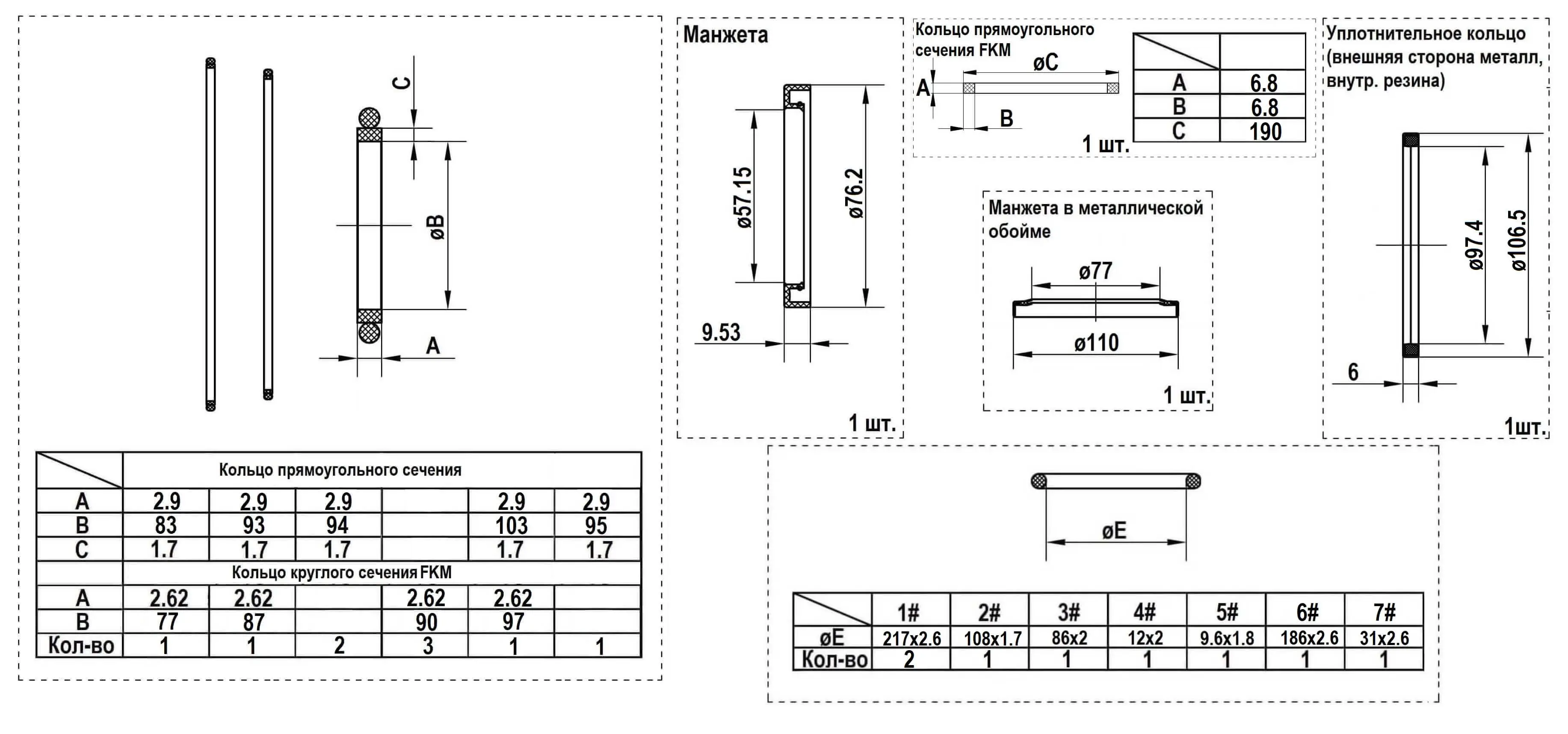 Манжета вала, кольца из резины для уплотнения стыков сопрягаемых деталей