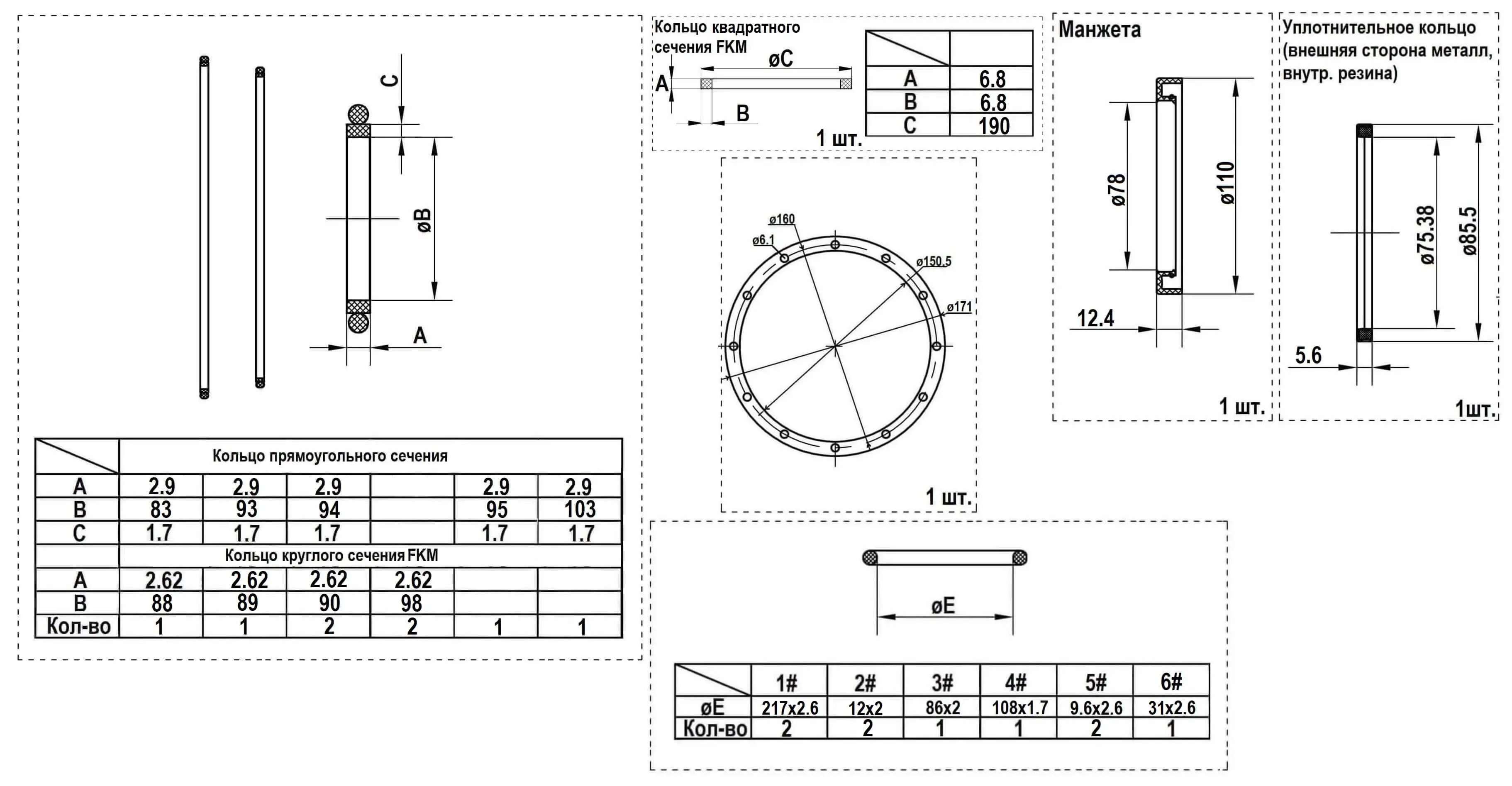 Манжета вала, кольца из резины для уплотнения стыков сопрягаемых деталей