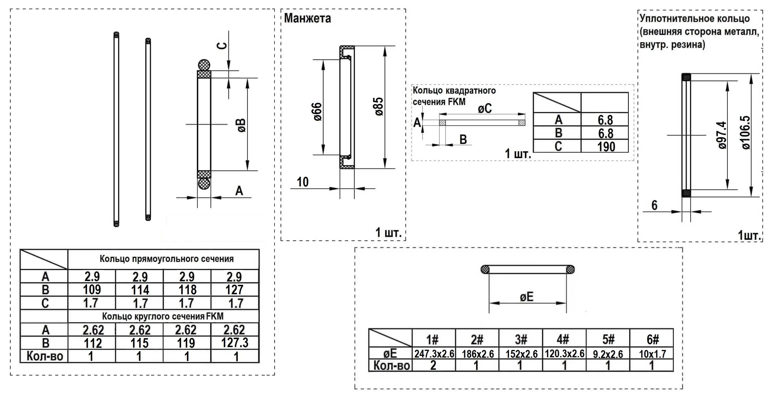 MCR10 запчасти Набор уплотнений (one speed) Тип 1