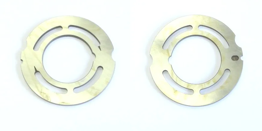Диск из металла с центральным отверствием и каналами от поверхности контакта с блоком цилиндров до корпусных каналов нагнетания и всасывания рабочей жидкости .
