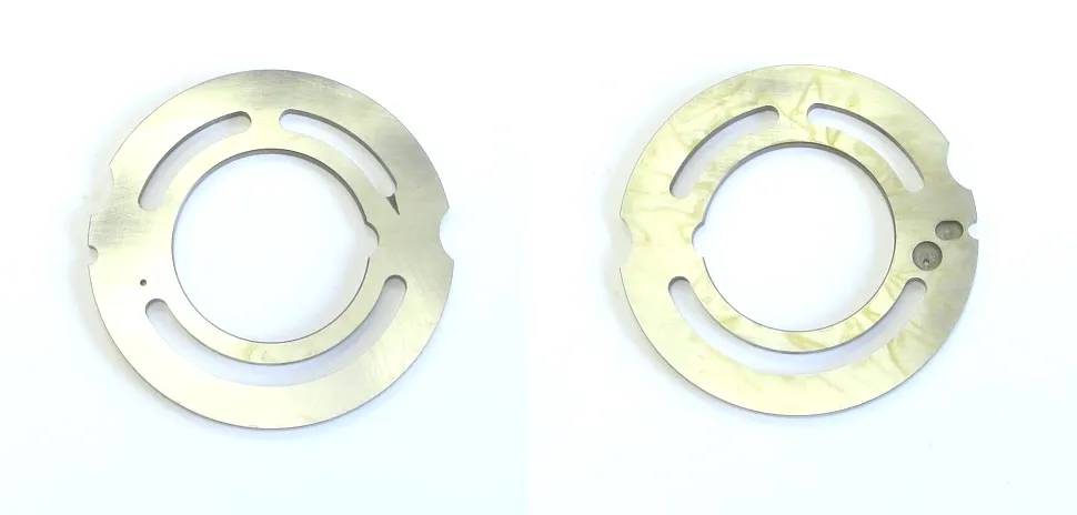 Диск из металла с центральным отверствием и каналами от поверхности контакта с блоком цилиндров до корпусных каналов нагнетания и всасывания рабочей жидкости .
