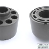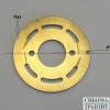 Диск из металла с центральным отверствием и каналами от поверхности контакта с блоком цилиндров до корпусных каналов нагнетания и всасывания рабочей жидкости .
