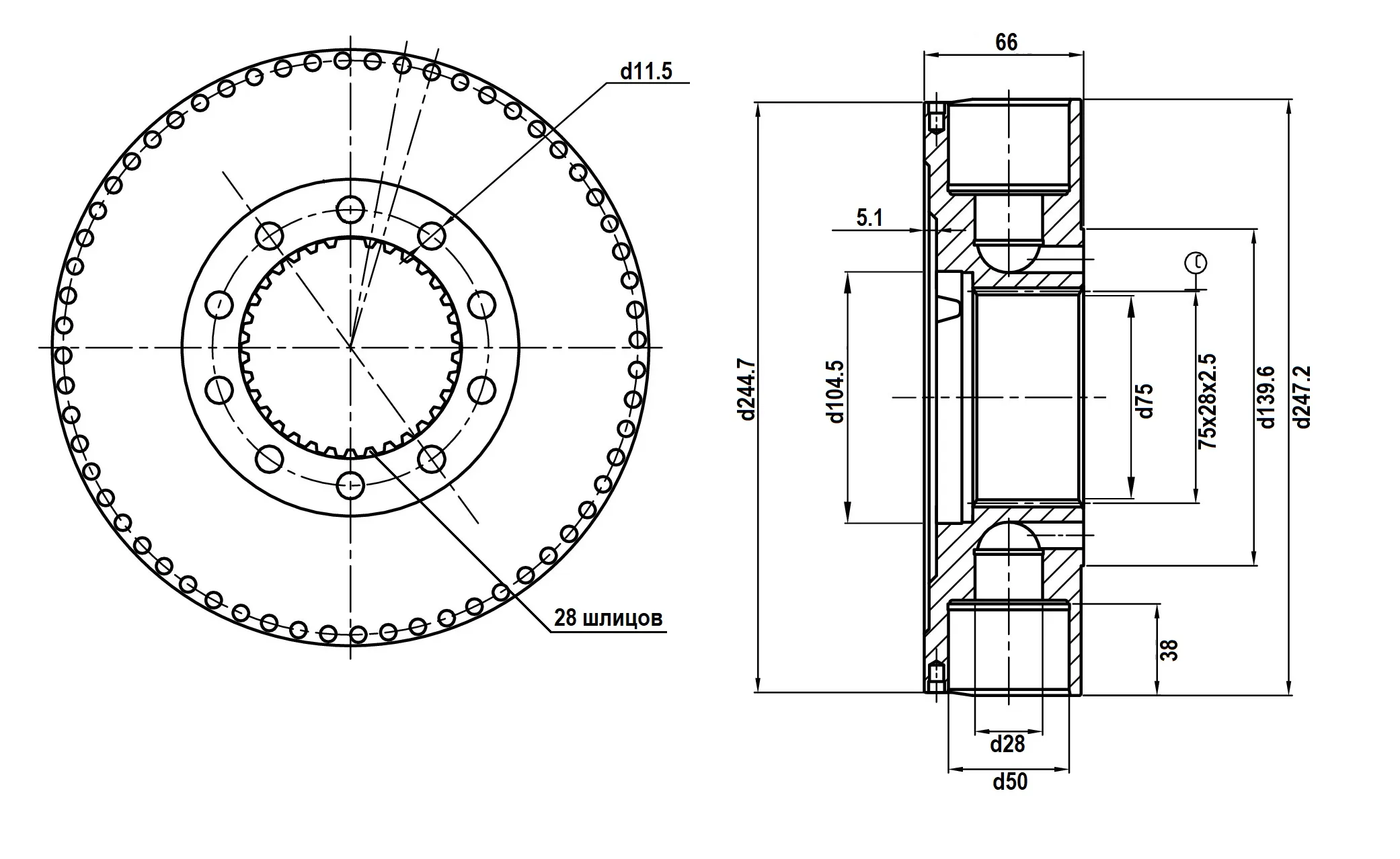 Poclain Hydraulics (Поклаин) MS18 запчасти Роторная группа (E) d50 T28 (не стандарт)