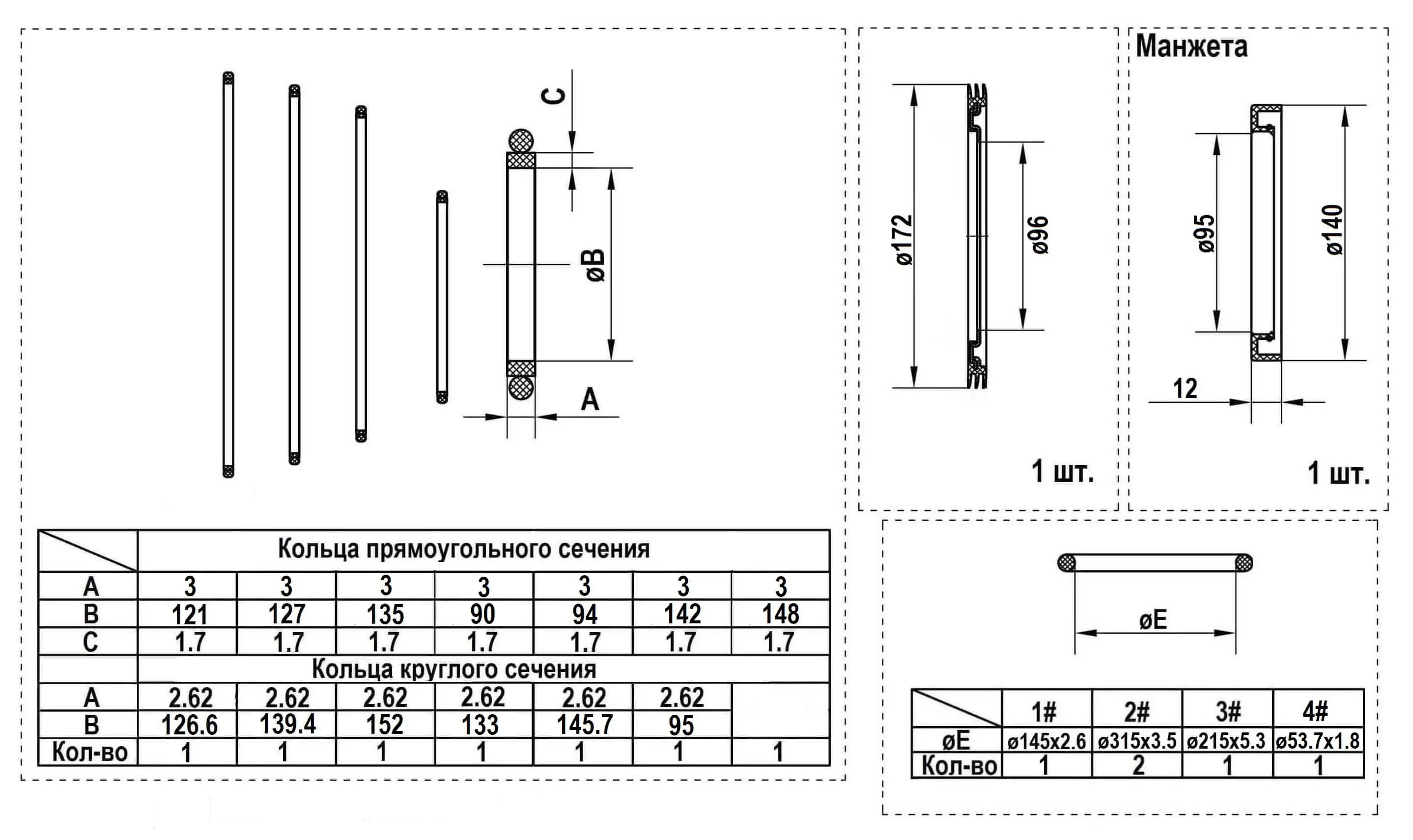 Манжета вала, кольца из резины для уплотнения стыков сопрягаемых деталей