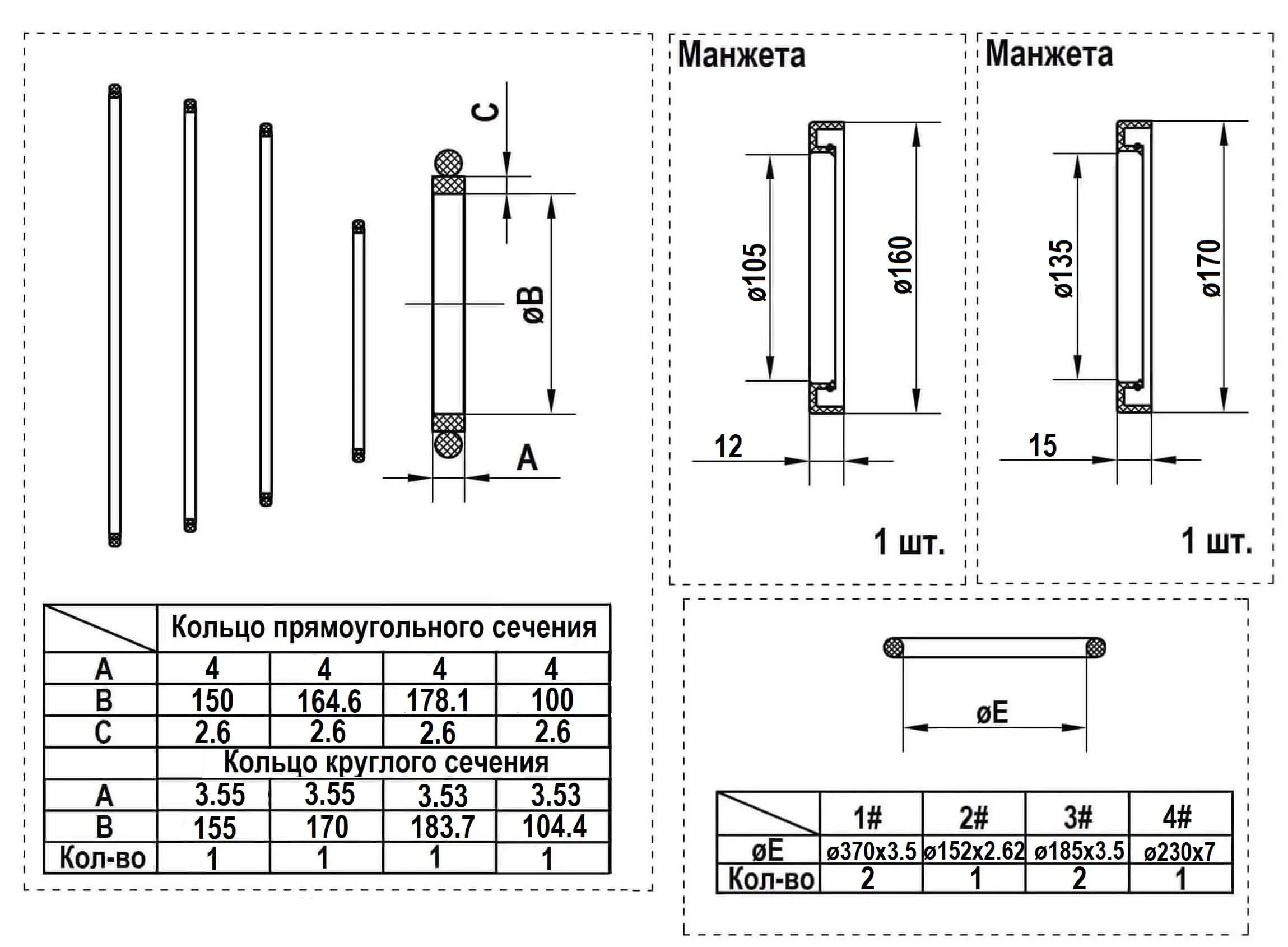 Манжета вала, кольца из резины для уплотнения стыков сопрягаемых деталей