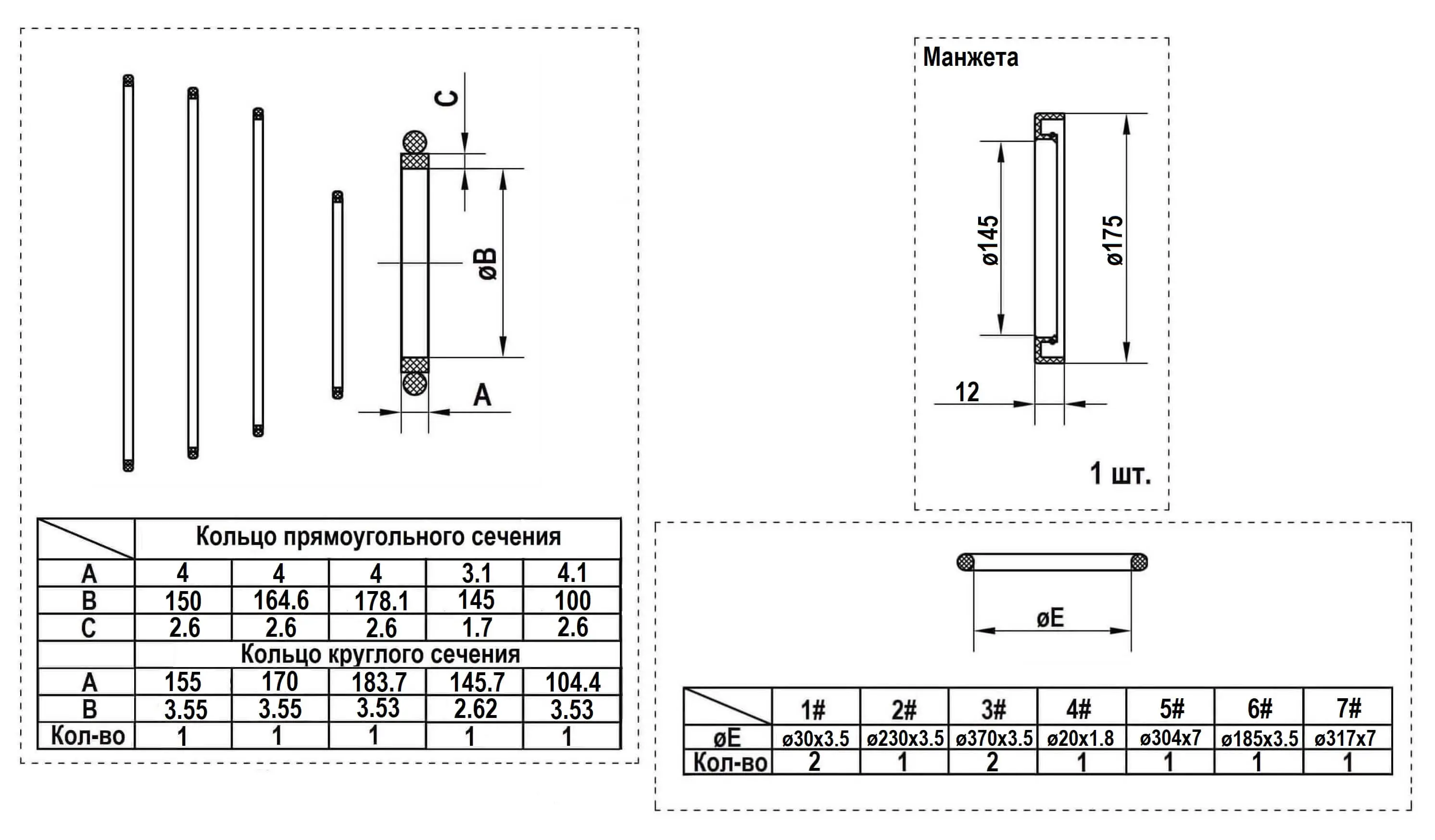 Манжета вала, кольца из резины для уплотнения стыков сопрягаемых деталей