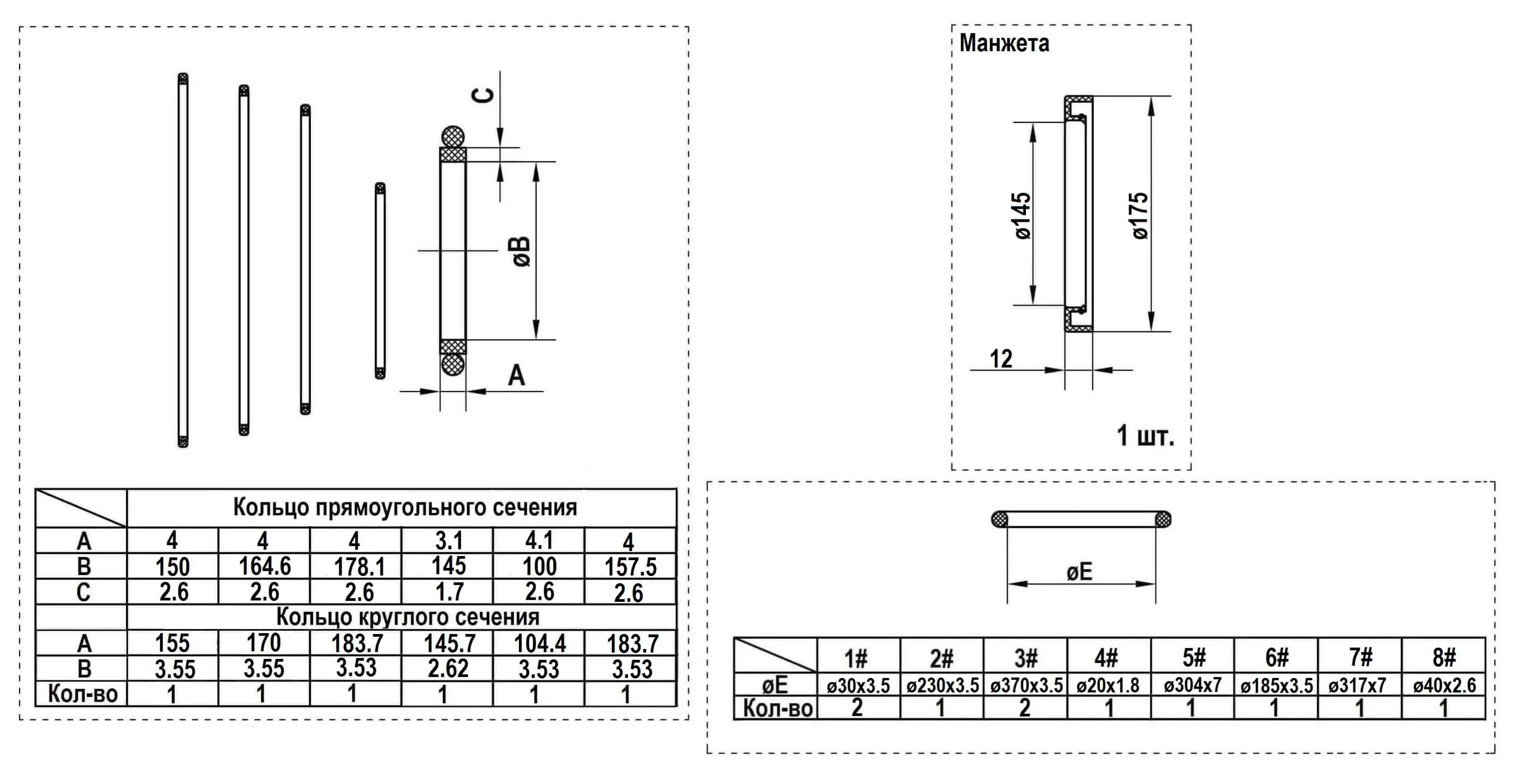 Манжета вала, кольца из резины для уплотнения стыков сопрягаемых деталей